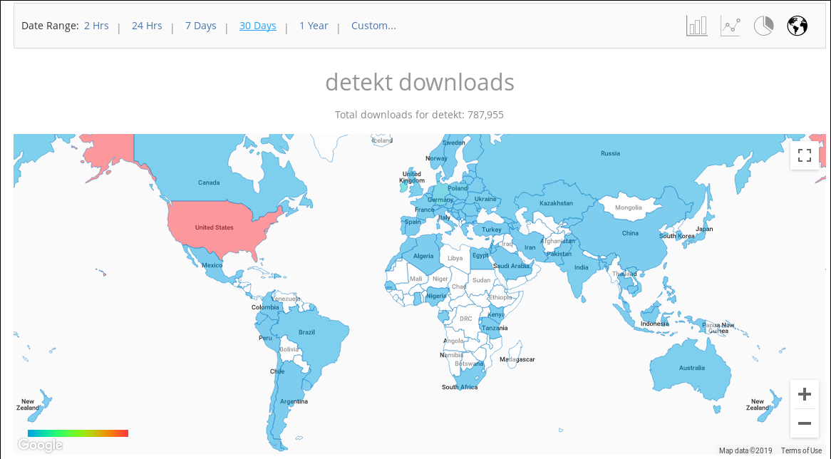 This does however not mean one download equals one user. There are like eight detekt modules each with a jar and pom which needs to be downloaded. As most of the downloads are bound to be CI, it is hard to calculate the actual number of detekt users.